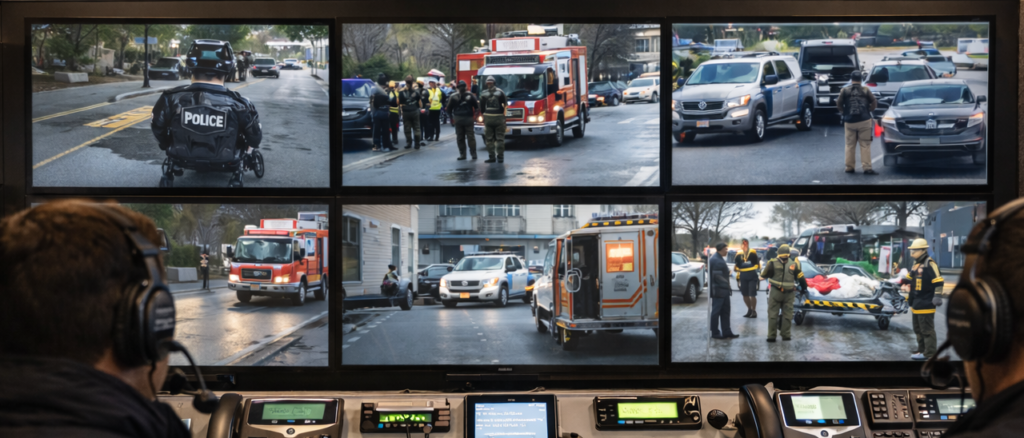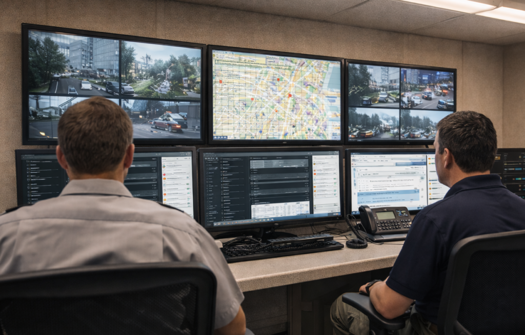 Video & C2Multi‑screen consoles; VMS, GIS, mapping, and decision‑support tools