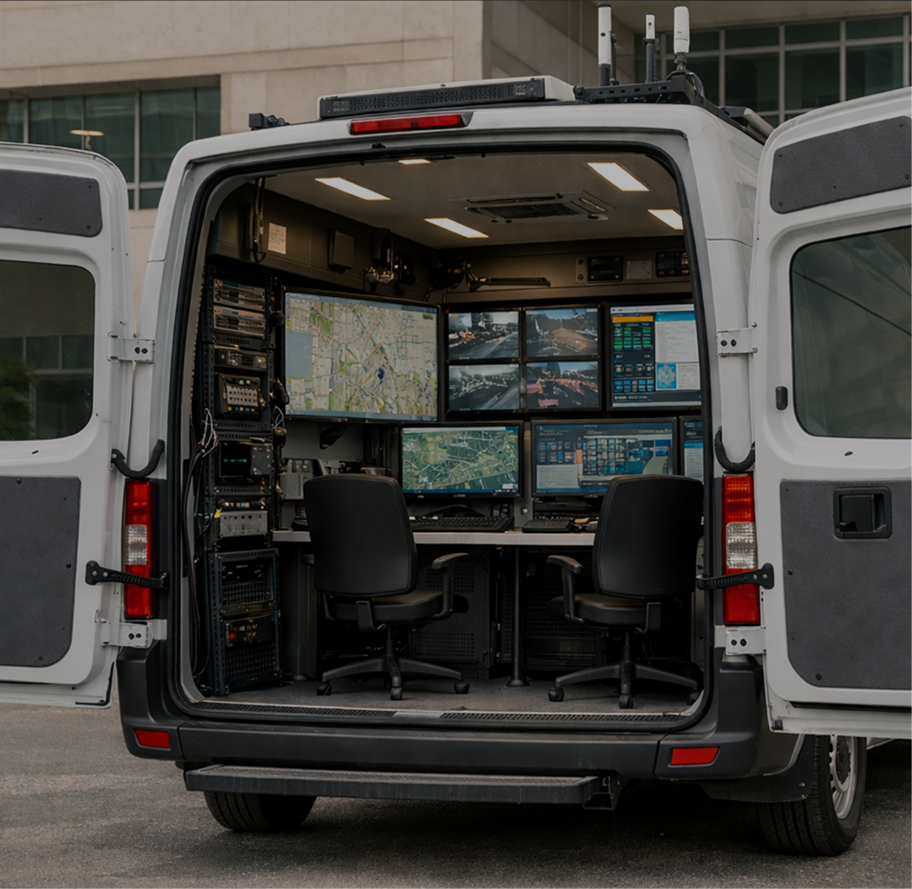 MER designs and integrates mobile and fixed shelters that become instant command hubs for emergency services, municipalities, utilities, and border/campus security. Built on proven defense‑grade platforms, our shelters centralize multi‑network communications, video management, and decision‑support tools—delivering resilient operations in hurricanes, fires, mass events, and infrastructure incidents.