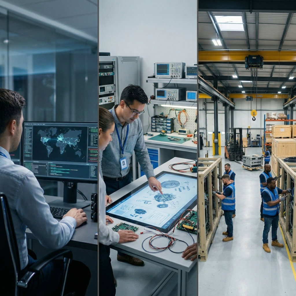 MER Delivery opera en tres dominios de capacidades. Cada proyecto se ejecuta con responsabilidad total de ingeniería — desde el diseño inicial hasta el despliegue en campo y el soporte a largo plazo.